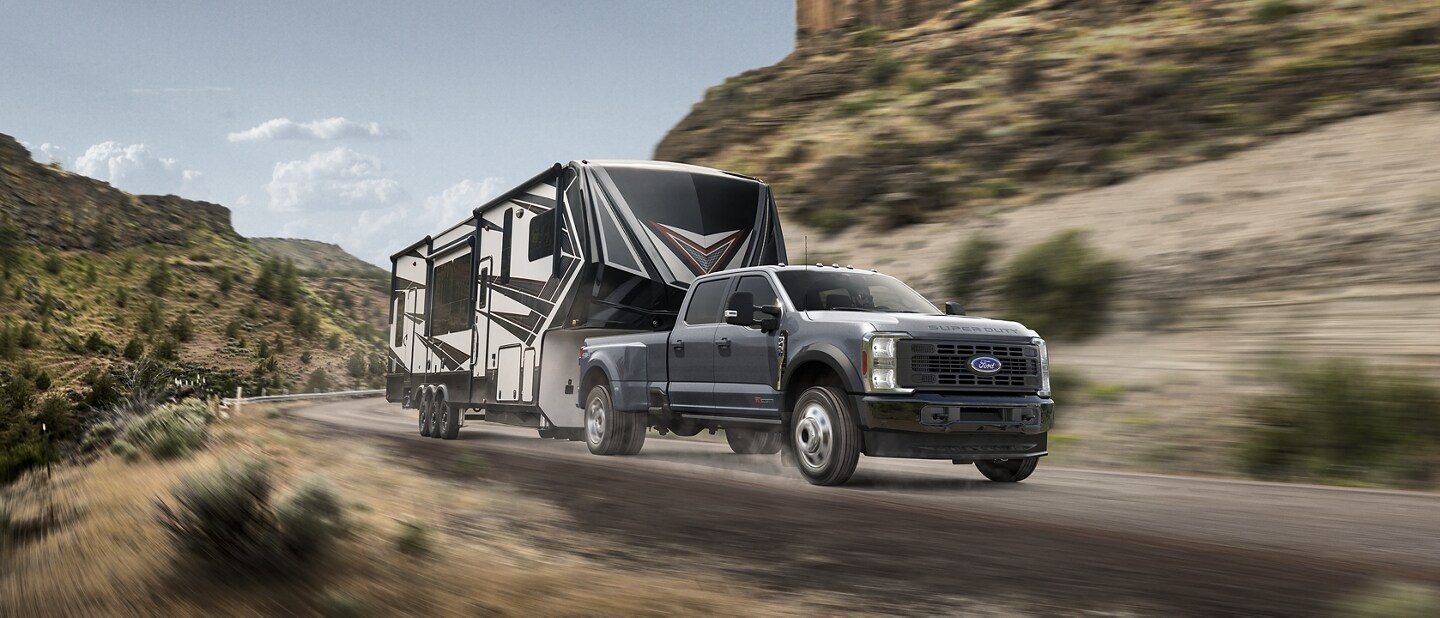 Super Duty® trucks lead the way with a best-in-class diesel powered maximum available 40,000 lbs. gooseneck tow rating.
